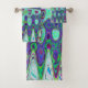 Ce Cool ensemble de serviettes de bain coloré dispose d'une mosaïque Abstraite vert et violet Wavy Retro All Over Print Design avec des accents rose, bleu, violet, magenta et Chartreuse. Le résultat est un tableau Cool, coloré, Super, psychédélique, atomique, Zigzag Abstrait que vous aimerez!