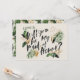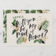Abstraite carte Maid of Honor. Feuillage tropical et texte peint à la main.