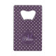 Ajoutez une pop de couleur à votre collection de barware avec cet ouvre-biberon violet poka à point de carte de crédit. Doté d'un design monogramme personnalisable, cet ouvre-bouteille est parfait pour ajouter une touche personnalisée à votre prochaine fête ou réunion. Fabriqué avec de l'acier inoxydable durable, cet ouvre-bouteille est à la fois pratique et élégant. Mettez à niveau votre barware avec ce chic ouvre-bouteille à pois blanc et violet acai. Avec un design monogramme personnalisable, vous pouvez le faire vous-même en ajoutant vos initiales. Fabriqué avec de l'acier inoxydable de haute qualité, cet ouvre-bouteille est à la fois durable et élégant, ce qui en fait l'ajout parfait à n'importe quel panier. Faites une déclaration lors de votre prochain évènement avec cet ouvre-biberon de carte de crédit à pois violet personnalisé. Ajoutez votre nom et vos initiales à la conception monographique personnalisable pour une touche unique. Fabriqué avec de l'acier inoxydable de haute qualité, cet ouvre-bouteille est à la fois pratique et élégant.