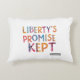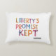 Le design des t-shirts comporte l'expression "Promesse de la Liberté gardée" en caractères gras et multicolores. Les couleurs sont vives et patriotiques, créant un impact visuel frappant. L'agencement des lettres est dynamique et attrayant, ce qui ajoute à l'attrait général du dessin. L'ensemble du design est énergique, positif et festif, ce qui traduit un sentiment de fierté et d'accomplissement.