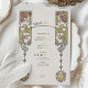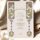 Invitation vos invités à votre journée spéciale avec ce magnifique Faire-part de mariage Art Nouveau Vintage aux accents Foil. L'avant présente d'élégants motifs floraux et géométriques dans des tons riches et terreux de vert, d'or et de pastel, mis en valeur par des touches délicates de papier peint. Le design complexe encadre vos détails mariages avec élégance et élégance intemporelle. Le dos reprend le motif floral avec un emblème raffiné, parfait pour un mariage à thème vintage. Cette invitation allie art classique et luxe moderne, ce qui en fait un choix idéal pour les couples qui souhaitent créer un faire-part mariage mémorable.