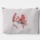 Ce sac de maquillage est doté d'un charmant arc de coquette rose avec des accents fleurs sauvages doux à l'avant et d'un arc unique à l'arrière où vous pouvez personnaliser avec un nom, le tout dressé contre un arrière - plan rose poudreux, en faisant un accessoire fonctionnel mais élégant.