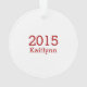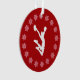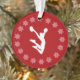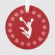 Ornement personnalisé de fille cheerleading ou de pom avec un arrière - plan rouge de fête, des flocons de neige blancs cassés et une acclamation/silhouette blanches lumineuses de pom. Faites-lui vos propres en ajoutant votre nom et la date au dos !