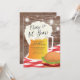 Les acclamations à 60 ans d'anniversaire d'invitation de barbecue comportant une tasse de bière et un hamburger ont placé sur un arrière - plan en bois rustique avec les lumières accrochantes de pot de maçon
