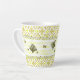 Tasse à café jaune vif avec accordéons, papillons et motifs musicaux.