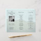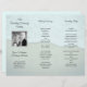 Cérémonie de plage plié programme de mariage modèle avec porte photo. Customisez trois sections qui deviendront des pages lorsque ce papier sera plié en accordéon après l'achat. La mousse d'océan sur le sable de plage est l'image arrière - plan pour le script et le texte imprimé. Inclure une petite photo du couple sur le devant. L'inverse est bleu clair.