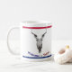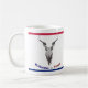 Crâne de vache avec des pistolets comme klaxons. Lit en bas le "accueil vers le Texas" en rouge, le blanc et le bleu. Tasse de personnaliser au style de votre choix.