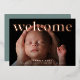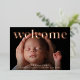 Les cartes faire-part de naissance fraîches et modernes sont dotées d'une photo horizontale à fond saigné ou orientée paysage avec "bienvenue" superposé sur le dessus en papier rose en feuille d'or. Personnalisez avec le nom du bébé et les statistiques de naissance en bas, et ajoutez trois photos supplémentaires à l'arrière, ainsi qu'un message personnel.