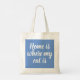 Chez moi, mon chat est un sac fourre-tout bleu script blanc. Parfait pour l'amoureux des chats.
