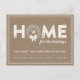 "Maison Pour Les Vacances", Monogramme Familial Dans Une Serrure, Sur Arrière - plan Papier Kraft Brown, Carte Postale De Faire-part De Vacances. L'arrière de la carte comporte un modèle design de carte postale avec un accueil de vacances court et votre adresse de retour. Un texte et un arrière - plan peuvent être changés en n'importe quelle couleur de votre choix. Illustration de fat*fa*tin. Facile à personnaliser avec votre propre message texte, nom, année, photo ou image. D'autres fonctions d'édition sont disponibles sur la page "modifier la conception". www.zazzle.com/fat_fa_tin www.zazzle.com/color_therapy www.zazzle.com/fatfatin_blue_knot www.zazzle.com/fatfatin_red_knot www.zazzle.com/fatfatin_mini_me www.zazzle.com/fatfatin_box www.zazzle.com/fatfatin_design www.zazzle.com/fatfatin_ink