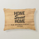 Un oreiller à jetons personnalisé qui présente un arrière - plan texturé en bois clair avec la citation "Home Sweet Home". Ajoutez le nom de famille à ce produit pour lui donner une touche personnelle.