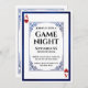 Cette invitation à la soirée de Game Night présente un design classique de carte de jeu. Un cadre de style vintage orné entoure la zone de texte centrale. Un cadre de conception de feuille bleue assorti borde l'invitation. Deux coeurs rouges et le monogramme de l'As sont imprimés dans des coins opposés, comme la disposition d'un jeu de cartes.