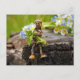 Fille elfe d'Acorn sur bouleau avec des fleurs - drôle printemps ou été carte postale