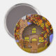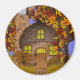 Le charmant gîte faery de cacre est conçu à partir d'un vrai cacre! Les cadres de fenêtre sont des brindilles. L'allée de galets mène à une véritable porte en bois. La cheminée est faite de galets. Ce chalet imaginaire est niché dans un champ parmi les arbres d'automne avec des feuilles d'érable d'or, jaune, rouge et brun qui poussent à partir de branches circulaires. Ce design graphique unique et original se trouve seulement chez Hinterland Harmony!