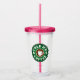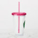 Café de glace personnalisé verre à tambours coloré. Belle tasse pour les boissons glacées. Fun tasses en plastique transparent avec texte personnalisé et logo de grains de café vintages. Idéal pour Anniversaire, douche nuptiale, fête de mariage, Anniversaire, bachelorette, affaires, boutique, magasin et plus encore. Couvercle rose et paille.