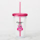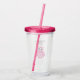 Verre en plastique pour enfant de chouette rose girly personnalisé. Tasse personnalisée avec couvercle et paille. Joli dessin animé d'oiseau avec typographie stylée pour nom d'enfant. Vaisselle pour enfants amusante pour la fête d'anniversaire des filles. Faites-en un pour les clients aussi !