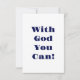 Cette carte de voeux a une police d'impression noire en hatton avec des lettres blanches avec le verset de la Bible Actes 10:7 KJV sur un arrière - plan bleu marine. Ce verset fait référence au 10e chapitre du Livre des Actes qui montre le 7e verset de cette Bible, citant le thème de la bible du roi Jacques avec les mots "Avec Dieu, tu peux !" sur le dos. Fabriqué avec une impression couleur pleine qualité sur un papier mat de 3,5 po x 5 po (portrait) ou de 5 po x 3,5 po (paysage) fabriqué et imprimé aux États-Unis.