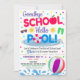 Invitation pour filles à une fête au bord de la piscine pour dire adieu à l'école, invitation créative et amusante pour célébrer la fin de l'année scolaire !