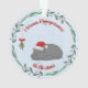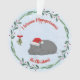 Bring a touch of sweetness and whimsy to your holiday season with this adorable illustration of a sleepy baby Pygmy hippo wearing a little Santa hat. Adjustable text to customize it exactly how you'd like it.