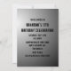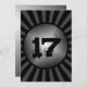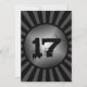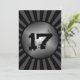 Modèle de l’invitation d’anniversaire du garçon âgé. Cartes de fête d'anniversaire de l'adolescent en gris et noir. Personnaliser âge (nombre) en gros noir grunge-look à l'avant dans le centre d'un motif rayures noir et gris. Des lettres grunge en noir.