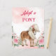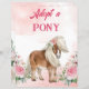 Adoptez un signe poney pour cheval poney fête équestre avec fleurs roses mignonette cheval sur un arrière - plan rose.