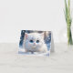 Adorable Chat Blanc Fluffy Yeux Bleus Carte de Vœu