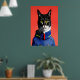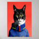 Portrait d'un chaton pompier mignon et adorable sur un arrière - plan rouge. C'est un art généré par l'IA.