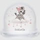 Cute baby shower or birthday snow globe gift or favor featuring adorable little female zebra wearing a cute pink bow sitting on clouds with some love hearts