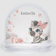 Cute baby shower or birthday snow globe gift or favor featuring adorable little female zebra wearing a cute pink bow sitting on clouds with some love hearts
