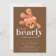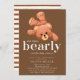 Fêtez l'arrivée prochaine de votre petit avec notre Invitation de Baby shower de l'ours en peluche We Can Bearly Wait. Cette charmante invitation présente un adorable design d'ours en peluche marron, parfait pour donner un ton chaleureux et accueillant à votre baby shower. Avec un espace suffisant pour tous les détails essentiels, vos invités seront heureux de participer à la célébration. Faites votre baby shower inoubliable avec cette invitation douce et fantaisiste qui capte la joie d'accueillir un nouveau bébé.