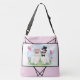 Image attrayante sur un sac carrossable d'un couple de lama portant leurs tenues mariages avec le coeur flottant autour d'eux.