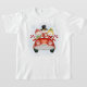Image douce sur un t-shirt de trois bonhomme de neige dans une voiture avec sucres de canne.