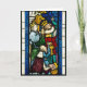 Carte de Noël avec l'image traditionnelle en verre souillé des trois rois adorant l'enfant du Christ.