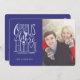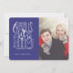 Typographie à la main, audacieuse et fantaisiste, en blanc, sur un arrière - plan bleu nuit. Cette carte de Noël avec photo porte le titre de cette célèbre carole religieuse de Noël, "O Come Let Us Adore Him."