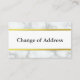 Avez-vous besoin de faire une faire-part mobile ? Cette carte de boîtier a un look de texture marbré blanc et vous pouvez customiser l'autocollant avec votre nom et nouvelle adresse. Au verso, il y a du texte noir personnalisable (indiqué : "Changement d'adresse"). Au milieu est un arrière - plan blanc pour votre nom et nouvelle adresse.
