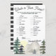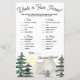 Qu'y a-t-il dans votre sac à main ? Ce magnifique jeu d'aquarelle à thème montagne et forêt coordonnées avec Adventure Await! invitation baby shower. Ce jeu est un ajout amusant à votre Baby shower!