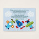 Utilisez ces petites étiquettes de service mignonnes (conçues à l'aide d'un modèle de carte de visite) dans le thème Avions mignons en vol pour inclure avec vos invitations. Beaucoup de gens préfèrent avoir un livre d'histoire plutôt qu'une carte pour les Baby showers. C'est une façon mignonne de le dire à vos invités. Assurez-vous de modifier le nom des parents sur la carte.