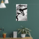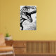 Un énorme dinosaure t-rex, en noir et blanc, sur une affiche murale à colorier ou à afficher telle quelle.