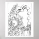 Mon dessin en noir et blanc avec un papillon de nuit et un escargot avec des fleurs d'imaginaire sur une affiche que les enfants peuvent colorier.