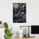Entrez dans un monde de sophistication avec l'élégance intemporelle du bleu marine et de l'or. La marine, profonde et veloutée, dégage un sentiment de mystère et de raffinement, tandis que les touches dorées chatoyantes apportent chaleur, luxe et une touche de grandeur. Cette combinaison de couleurs rappelle les cieux étoilés, les rêves célestes et les intérieurs aristocratiques, ce qui en fait un excellent choix pour la décoration luxueuse, les murs de galeries et les pièces élégantes de déclaration. Qu'il s'agisse de brosses métalliques, de dessins géométriques ou de compositions abstraites, cet imprimé en carton mousse exhale richesse et exclusivité, transformant tout espace en oeuvre d'art.