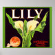 Affiche 1930 Lily orange crate étiquette