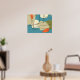Affiche 1950 Mid Century Moderne Abstrait Bleu et beige