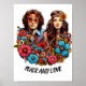 Affiche 1960 Hippie Couple enfant à fleurs Peace & Love ar