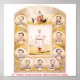 Print montre des portraits individuels de membres d'équipe, chacun identifié par son nom, autour d'une image d'un joueur en uniforme penché sur une chauve-souris.