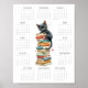 Affiche 2026 One-Page Calendar with Black Cat and Books