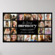 Modèle d'affiche de mémorial de funérailles avec un fond noir pouvant être changé en n'importe quelle couleur, un modèle de collage de 22 photos que vous pouvez personnaliser avec vos propres images, et un modèle de texte moderne "en souvenir" que vous pouvez personnaliser.