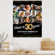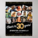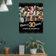 Élégante affiche de fête du 30e anniversaire avec un arrière - plan noir élégant qui peut être changé en n'importe quelle couleur, un collage photo de 15 au fil des ans, le dicton "encourage à 30 ans", bords de parties scintillant or, leur nom, et la date de la célébration.