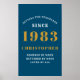 Affiche 40th Birthday Born 1983 Ajouter Nom Blue Gold