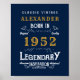 Affiche 70th Birthday 1952 Ajouter Nom Legendary Blue Gold