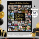 75e anniversaire 55 photo Collage ANNÉES DANS L'affiche FABRIQUER Panneau d'impression. Célébrez un 75ème anniversaire pour lui ou elle avec des souvenirs photo au fil des ans avec cet affichage photo imprimé sur une affiche utilisant ce modèle de collage photo facile à télécharger avec 55 photos carrés et rectangle de différentes tailles avec une calligraphie rétro script typographie titre 75 ANS DANS LA FABRICATION qui incorpore leur année de naissance dans le design et votre texte personnalisé en or sur votre choix de couleur arrière - plan (en noir). L'exemple montre HAPPY BANTHDAY NAME. OPTIONS : L'échantillon est présenté dans une taille de 24x30" sur papier à valeur (Matte); d'autres tailles d'impression standard et personnalisées et qualité du papier, fichier de téléchargement numérique instantané pour l'impression locale ou le transfert de la conception à une planche à mousse, bannière, toile ou d'autres options de produit sont disponibles sur la page de commande. CONSEIL DE REdimensionnement : Choisissez Taille personnalisée pour les bordures paires en modifiant la hauteur et la largeur proportionnellement APRÈS avoir cliqué sur l'icône DÉVERROUILLER (ressemble à un lien de chaîne). ASSISTANCE : Pour obtenir de l'aide sur la modification ou la personnalisation de la conception, le changement de couleur, le redimensionnement ou le transfert de la conception, contactez le concepteur AVANT DE COMMANDER via l'onglet MESSAGE Conversation Zazzle ou envoyez un courriel à makeitaboutyoustore@gmail.com.